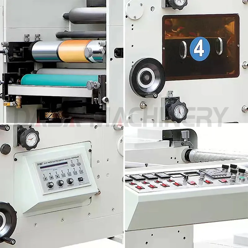 The DBRY480-4C Flexo Printing Machine delivers a complete, high-efficiency solution for label, note, and paperboard production. Designed for versatility, it integrates unwinding, multi-color printing, drying, laminating and rewinding in a single process, greatly reducing manual handling and improving workflow efficiency. Its durable ceramic anilox rollers ensure long-lasting performance and consistent ink transfer, while automatic tension control and precision registration guarantee accurate, high-quality results at fast speeds. With user-friendly operation, low maintenance requirements, and compatibility with eco-friendly inks, this compact yet powerful press offers excellent economic benefits, making it an ideal choice for modern printing factories seeking precision, productivity, and sustainability.